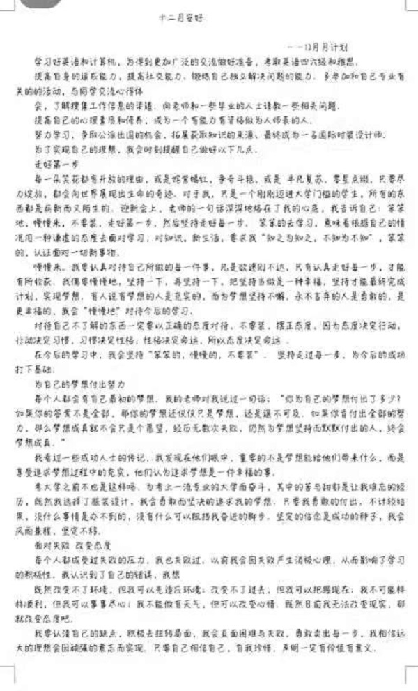 为了提高同学们的做事效率,以及学习习惯,让同学们拥有明确的目的,12月13日,437ccm·必赢国际于6号教学楼104教室举办2020年“十一月珍重,十二月安好”12月月计划征集活动,由报名本次活动的20级同学参加。