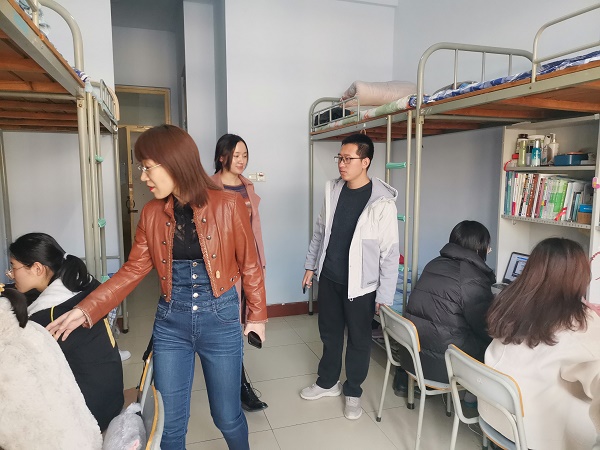 为了进一步让同学们意识到宿舍安全的重要性,提高思想认识,同时丰富学生消防安全知识,提升自救能力。3月5日,学生科科长马盛楠、辅导员尹宁、来晓兵老师对男女生宿舍进行安全隐患的排查工作。