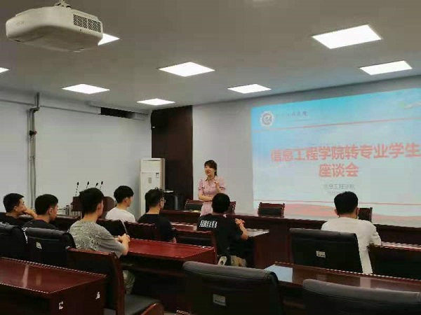 学生科科长马盛楠介绍了今年我们转专业工作情况,对成功转入我们的同学表示祝贺和欢迎。马盛楠老师向同学们简要介绍了我们基本情况,包括历史沿革,师资队伍,教学与专业建设及人才培养等。我们办学历史悠久,师资队伍雄厚,院风学风良好。表示学院方面将为同学们的学习提供全方位的服务和帮助,希望同学们调整好学习生活节奏,积极投入新的学习任务,尽快融入新集体。随后,向同学们介绍了我们学科竞赛及考研工作,鼓励同学们在学好专业的基础上,积极参加学科竞赛,并就大学四年各个时间段适合参加哪些竞赛活动进行了指导;从专业学习和大学规划等,结合我们历届学生考研情况,勉励同学们尽早谋划,立志考研,提高就业质量。