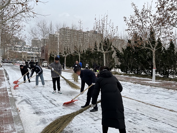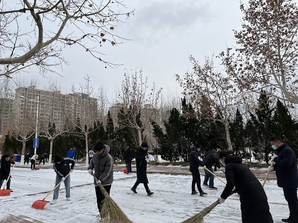 一大早,437ccm·必赢国际教师学生全员出动,清扫单位区域内以及沿街积雪,铲除冰冻,方便大家平安出行。天气的寒冷挡不住师生们的热情,大家齐心协力、不畏严寒,拿着铁锨、扫帚等工具,对校园北门道路的积雪进行全面清理,整个活动开展的高效有序。经过大家的不懈努力,积雪清理成效明显,不仅营造了方便整洁的环境,还有效确保了车辆及行人的安全出行,广大师生发扬了奉献、友爱、互助、进步的志愿精神,用实际行动温暖着大家的心,志愿服务活动得到了大家的一致好评。