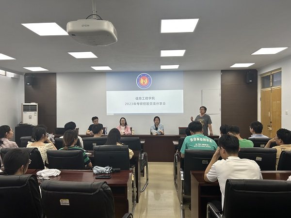4月19日,解建飞(录取到大连海事大学电子信息方向)、付帅奇(录取到江西财经大学电子信息方向)、吴成明(调剂到天津工业大学电子信息方向)三名同学在第一专题考验交流会上分享了自己的考研故事和经验,并就考研复习与学校选择给出了自己的思考和建议。互动环节气氛活跃,20级学生纷纷举手,在报考学校的选择、复习计划的制定、学习材料的选取等方面提出了自己的疑问,学长们也一一解答,并给出自己的建议。