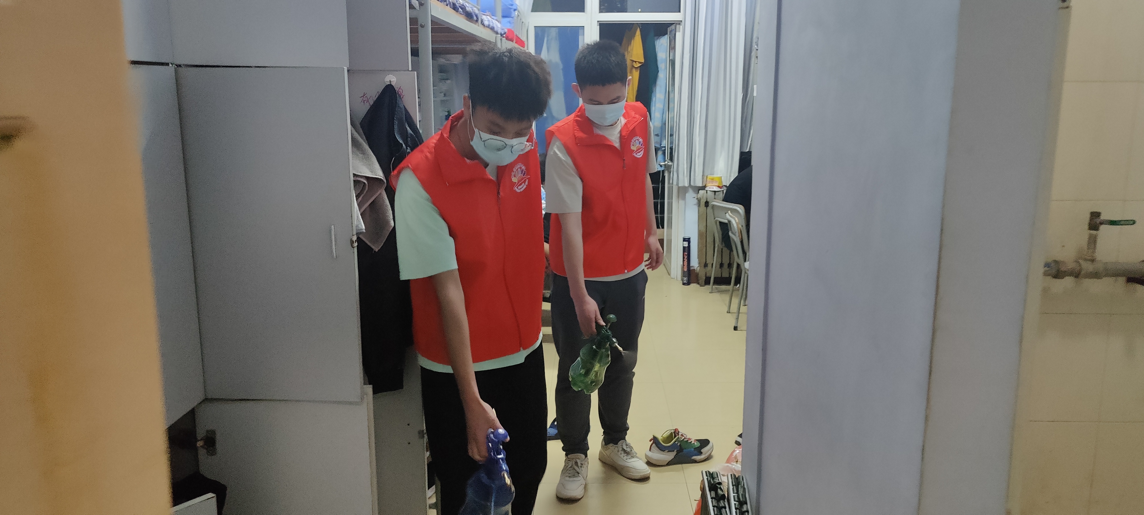 临时党员支部开展公寓内消杀工作